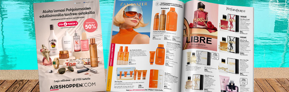 Upeassa Airshoppen-lehdessämme on runsaasti inspiraatiota taxfree-ostosten tekemiseen, teetpä sitten ostoksia lomaasi varten tai tuliaisiksi.