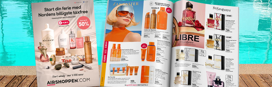 På airshoppen.com kan du nemlig shoppe taxfree i ro og mag inden afrejse - og glæde dig til alt fra solcreme og slik til skønne parfumer, smykker og spiritus, der står klar på flysædet på turen ud eller hjem. Og endda til priser, der er lavere end i de nordiske lufthavne.